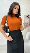 Blusa Básica Feminina Gola Alta Em Algodão Manga Curta
