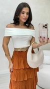 Saia Off White Feminina Midi Em Suede Com Fenda E Ziper Frontal