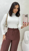 Blusa Off White Básica Feminina Canelada Gola Alta Manga Longa