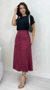 Fotos Reais do Produto , Saia Midi , Material Suede , Não fica Transparente , Possui Fenda Frontal , Possui Bolso Frontal e Traseiro , Fechamento em Zíper na Parte de trás , Possui Forro.