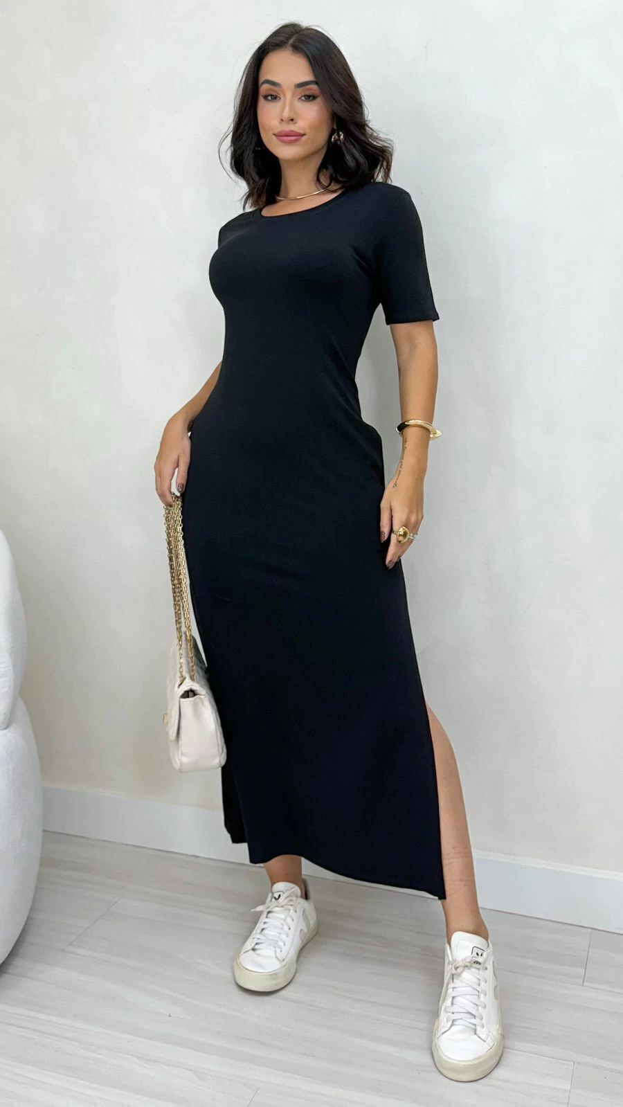 Fotos Reais do Produto , Vestido Feminino , Vestido Regata , Modelo Cavado , Gola Redonda , Modelo Midi , Possui o Caimento que Veste Justo ao Corpo. A fenda lateral é outro detalhe que confere um toque de sensualidade e modernidade ao vestido. A fenda permite liberdade de movimento e um visual mais leve, tornando-o perfeito para os dias de calor. Essa combinação de detalhes faz do vestido uma opção versátil para diferentes ocasiões, permitindo que você se sinta confiante e estilosa.